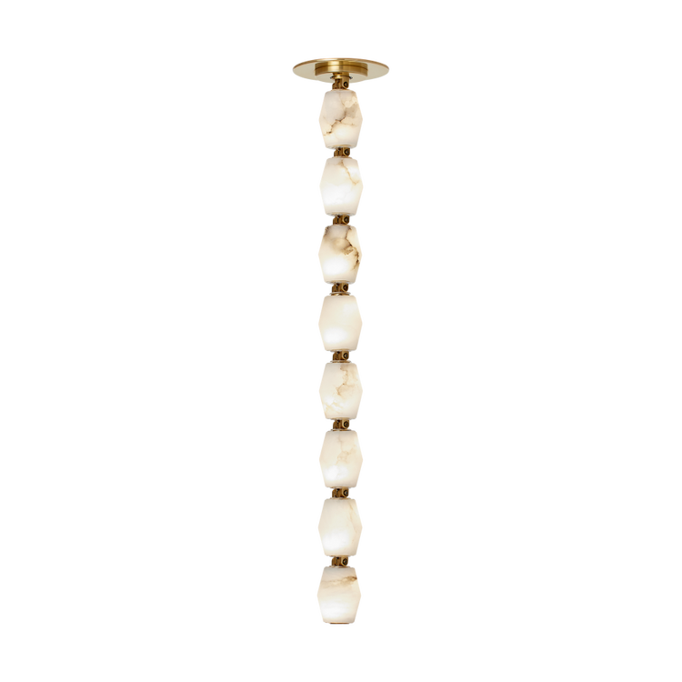 The Collier by Sean Lavin exudes luxury and sophistication. Solid faceted Alabaster Glass fully encapsulates integrated LED modules interlocked by solid brass connectors. Available in multiple-length strands for the ultimate customization. Creates an incredible light sculpture with stunning illumination. The Collier features solid faceted Alabaster Glass manufactured in the Czech Republic. The natural brass connectors are custom engineered to support the glass and add additional beauty to the piece. Available with remote or surface mounted driver options. Predetermined length options allow for easy ordering with virtually unlimited versatility. Contact factory for custom configurations.