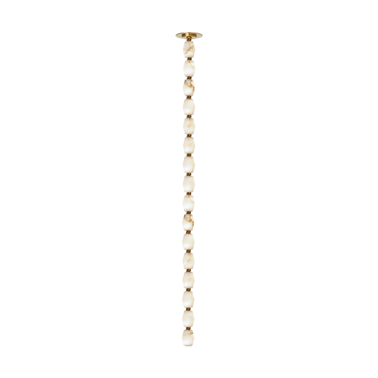 The Collier by Sean Lavin exudes luxury and sophistication. Solid faceted Alabaster Glass fully encapsulates integrated LED modules interlocked by solid brass connectors. Available in multiple-length strands for the ultimate customization. Creates an incredible light sculpture with stunning illumination. The Collier features solid faceted Alabaster Glass manufactured in the Czech Republic. The natural brass connectors are custom engineered to support the glass and add additional beauty to the piece. Available with remote or surface mounted driver options. Predetermined length options allow for easy ordering with virtually unlimited versatility. Contact factory for custom configurations.
