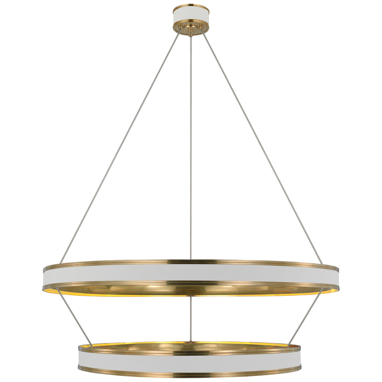 Connery 40" Two-Tier Ring Chandelier in Matte White and Antique-Burnished Brass