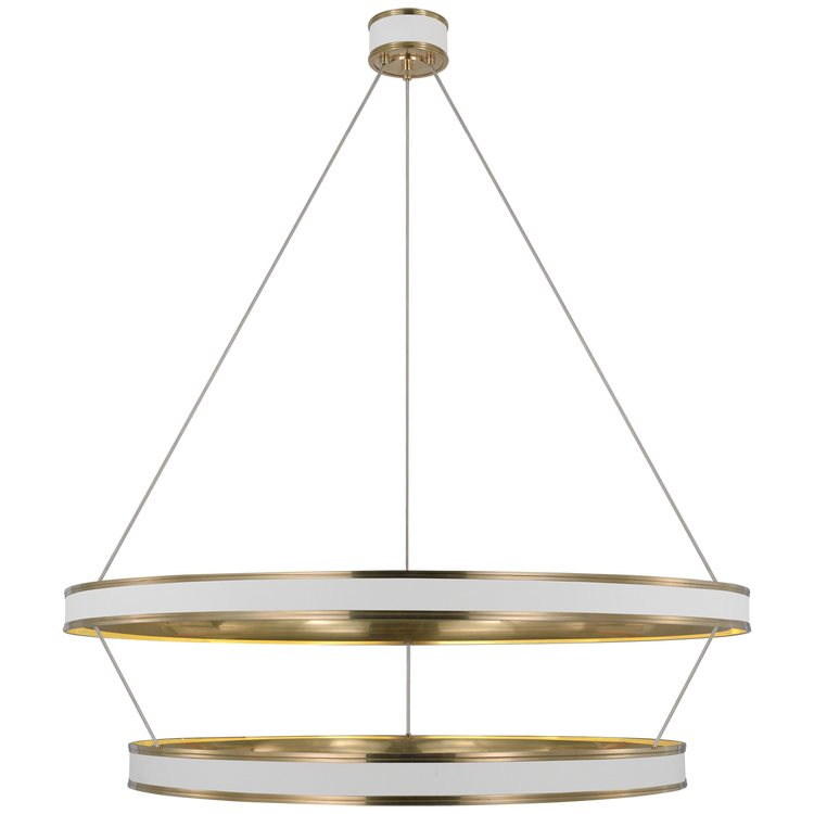 Connery 50" Two-Tier Ring Chandelier in Matte White and Antique-Burnished Brass