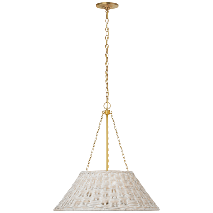 Corinne 24" Woven Hanging Shade in Soft Brass with White Wicker Shade