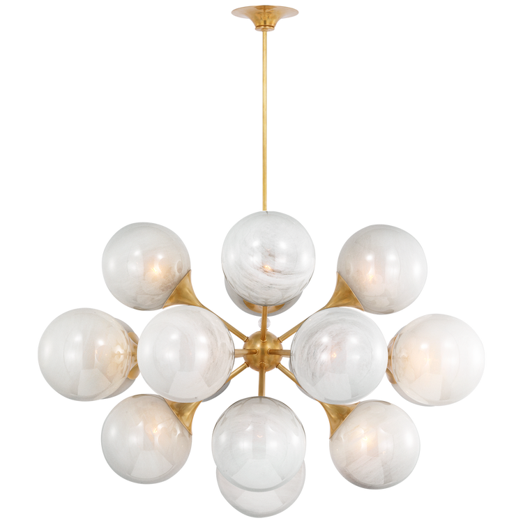 Cristol 40" Chandelier in Hand-Rubbed Antique Brass with White Strie Glass
