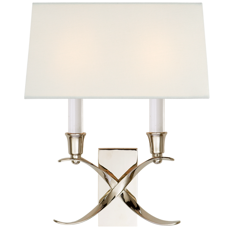 Cross Bouillotte Small Sconce in Polished Nickel with Linen Shade Open Box