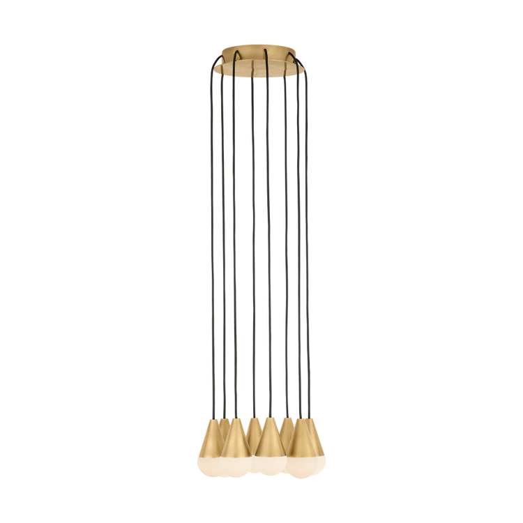 The Cupola Chandelier by Sean Lavin is part of the Trellis collection, representing modern, minimalist lighting in its purest form. Each of the chandelier profiles features an optic that brilliantly illuminates while minimizing glare. Cupola features a domed alabaster optic and tapered metal shade. The multitude of canopy options ship with the cable attached which can be easily cut in the field to size for the ultimate in versatility. The pendants feature a quick-connect simplifying installation. Optional spacers and pendant accessories facilitate unique geometries while adding depth and dimension to this stunning collection.