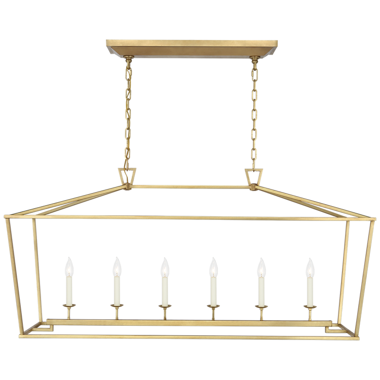 The Darlana series by Chapman & Myers brings classical proportions into balance. An open steel framework with slightly offset corners and distinctive triangular top loop detail blends traditional and minimalist and adds refinement to the classic lantern form. Geometric shapes add modern structure without overwhelming more casual interiors. From single light lanterns, to oversized, tiered chandeliers, the Darlana series creates a focal point outdoors, in entryways, above kitchen islands, and in dining or living rooms.