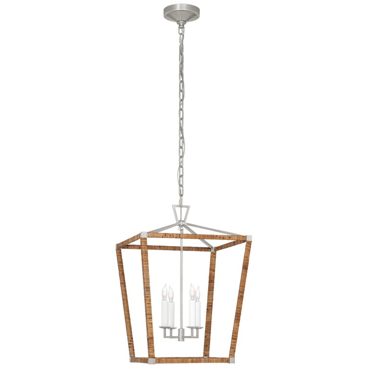 Darlana Medium Wrapped Lantern in Polished Nickel and Natural Rattan Open Box