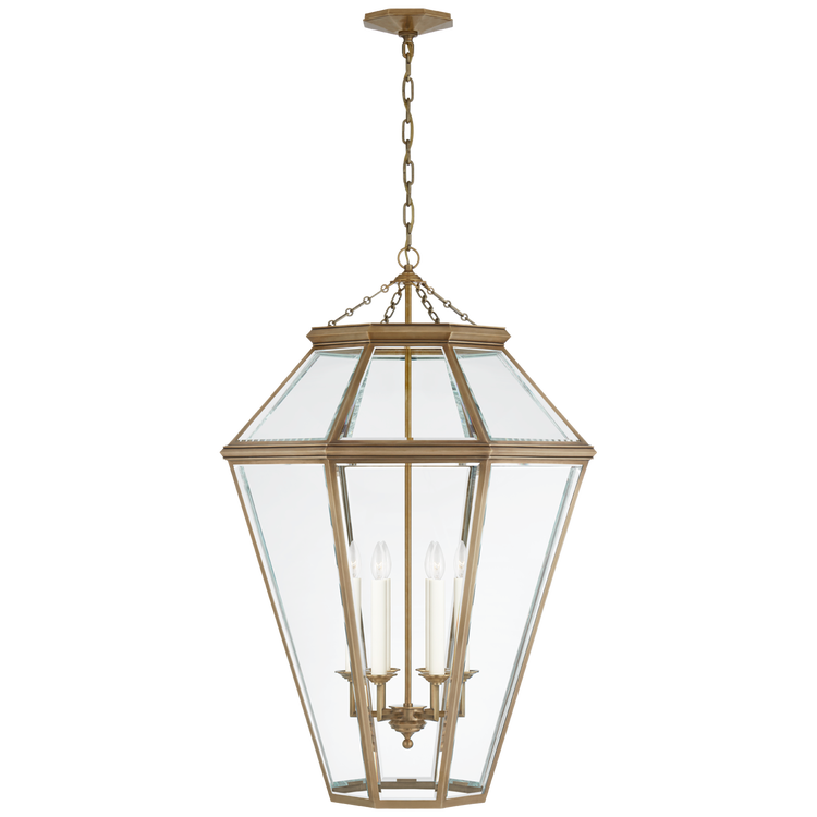 Edmund Large Lantern in Natural Brass with Clear Beveled Glass Open Box