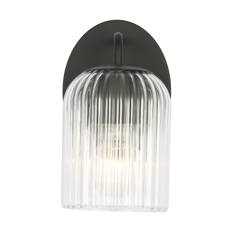The Eisele Small Sconce introduces curvature and texture to the bath environment through softly contoured forms and suspended ribbed glass shades. The oval backplate adds a distinct visual counterpoint, offering an updated silhouette that reinforces the collection?s softened geometry. With gently arcing arms and open glass diffusers, Eisele balances sparkle with control, providing functional illumination suited to powder rooms, guest baths, and primary suites.
