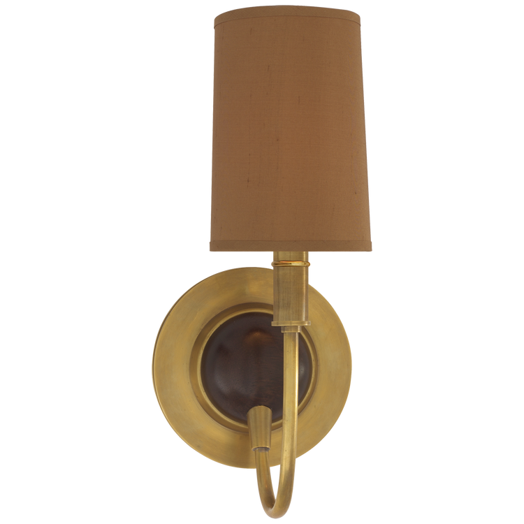 Elkins Sconce in Hand-Rubbed Antique Brass and Chocolate Wood Finish with Fawn Silk Shade Open Box