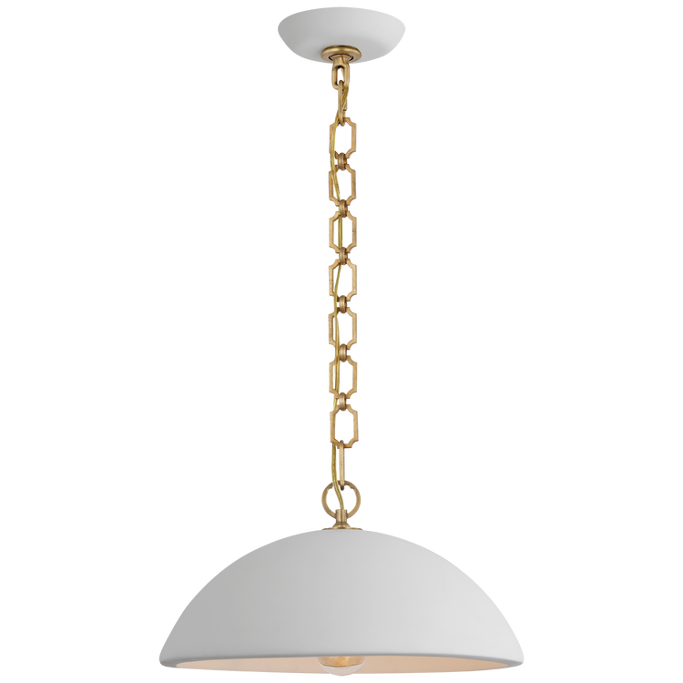 The sculptural Elliot by Suzanne Kasler presents a rugged-yet-refined silhouette in lightweight concrete. The unexpected material's smooth, inverted dome hangs from a slender chain and casts a light that's ideal over kitchen islands or dining room tables.
