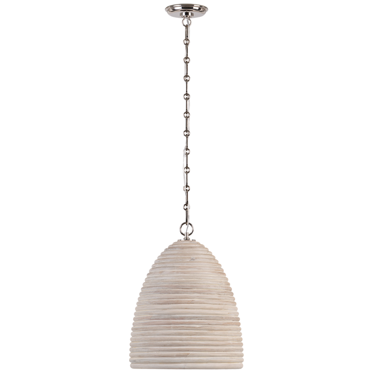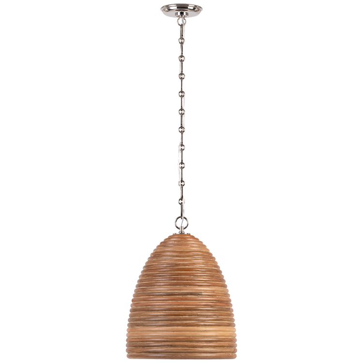 Emerson 14" Pendant in Polished Nickel with Ash Rattan Shade