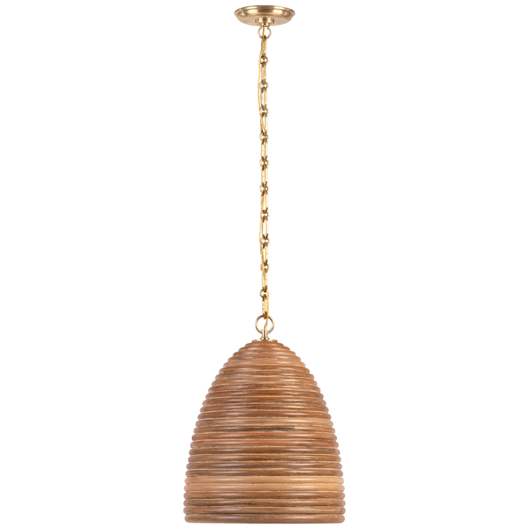 Emerson 14" Pendant in Hand-Rubbed Antique Brass with Natural Rattan Shade