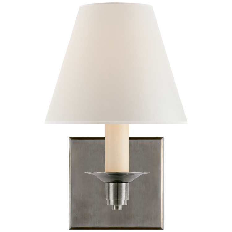 Evans Single Arm Sconce in Antique Nickel with Percale Shade Open Box