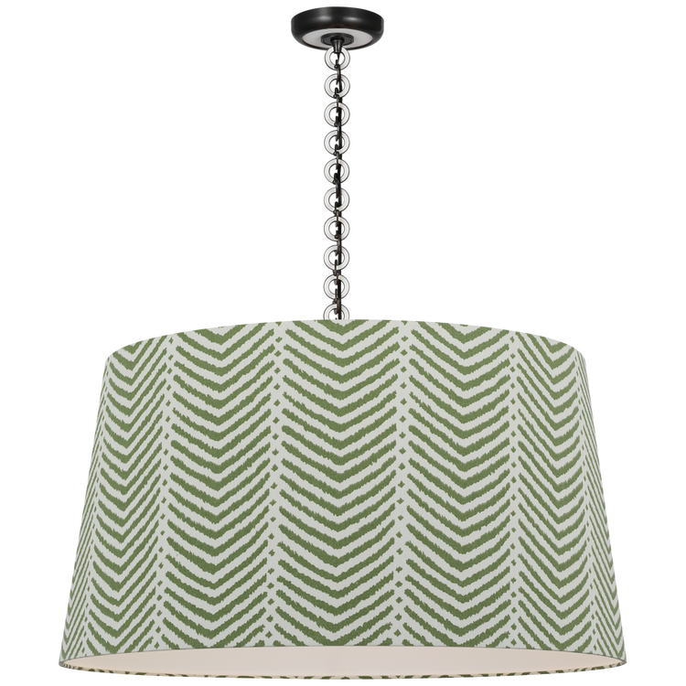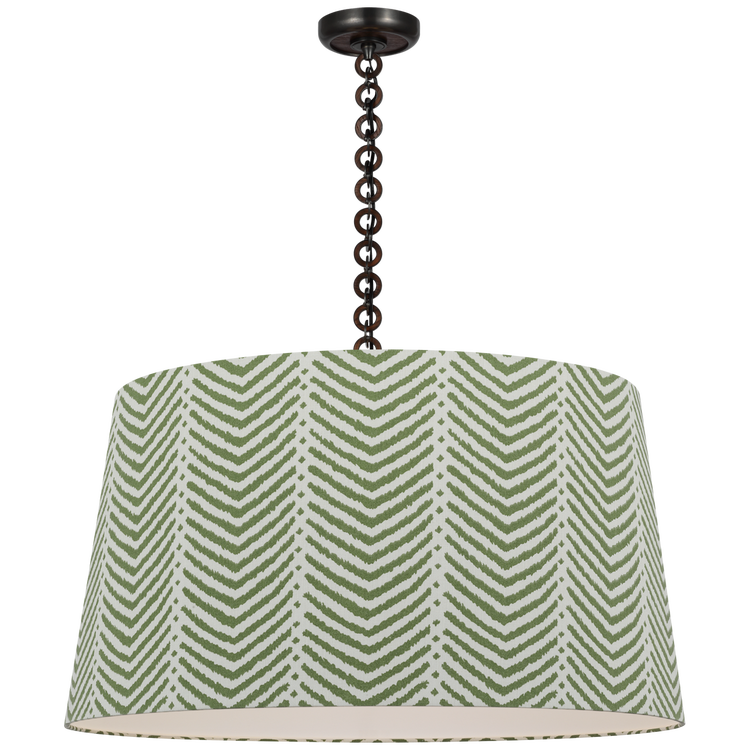Evelyn 33" Hanging Shade in Bronze and Natural Oak with Schumacher Verde La Jolla Shade