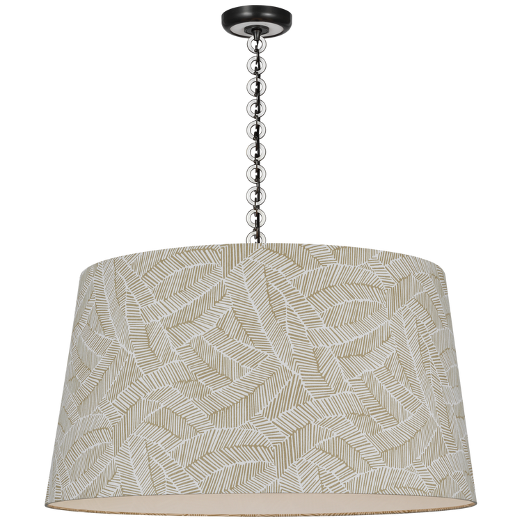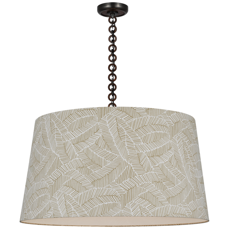 Evelyn 33" Hanging Shade in Bronze and White Oak with Schumacher Taupe Abstract Leaf Shade