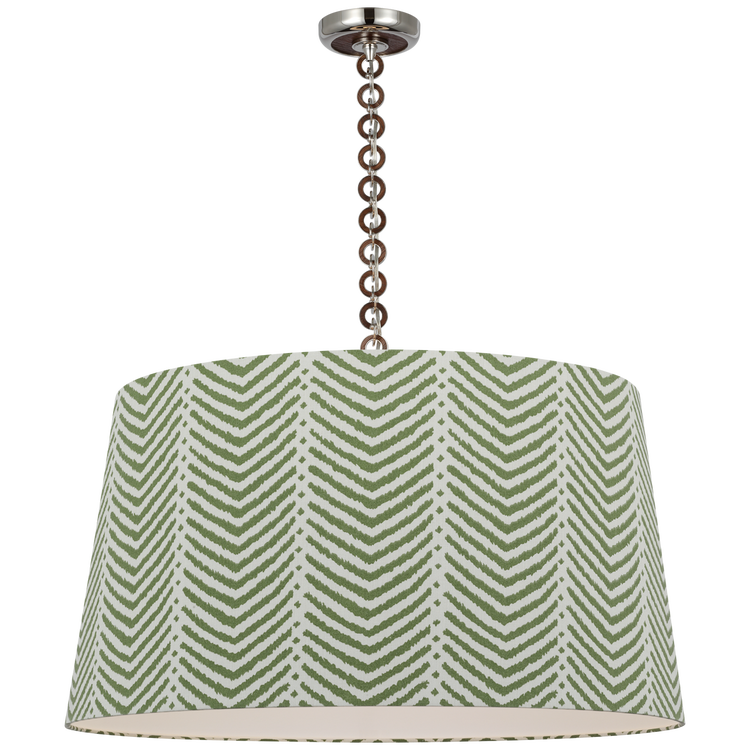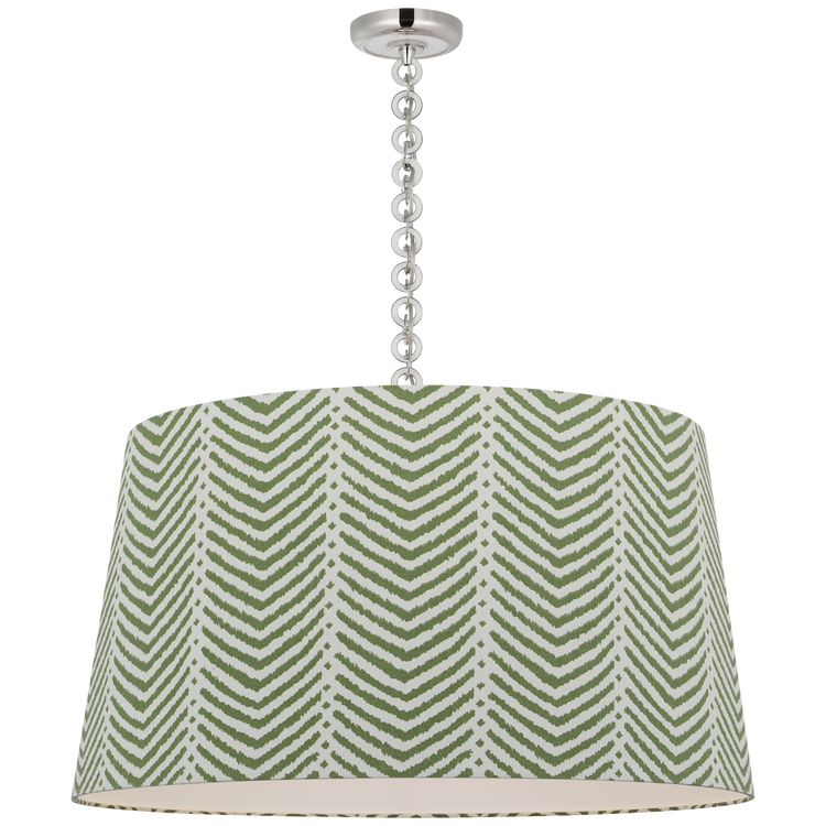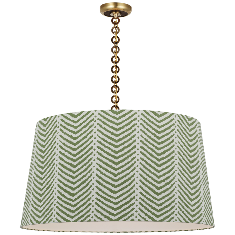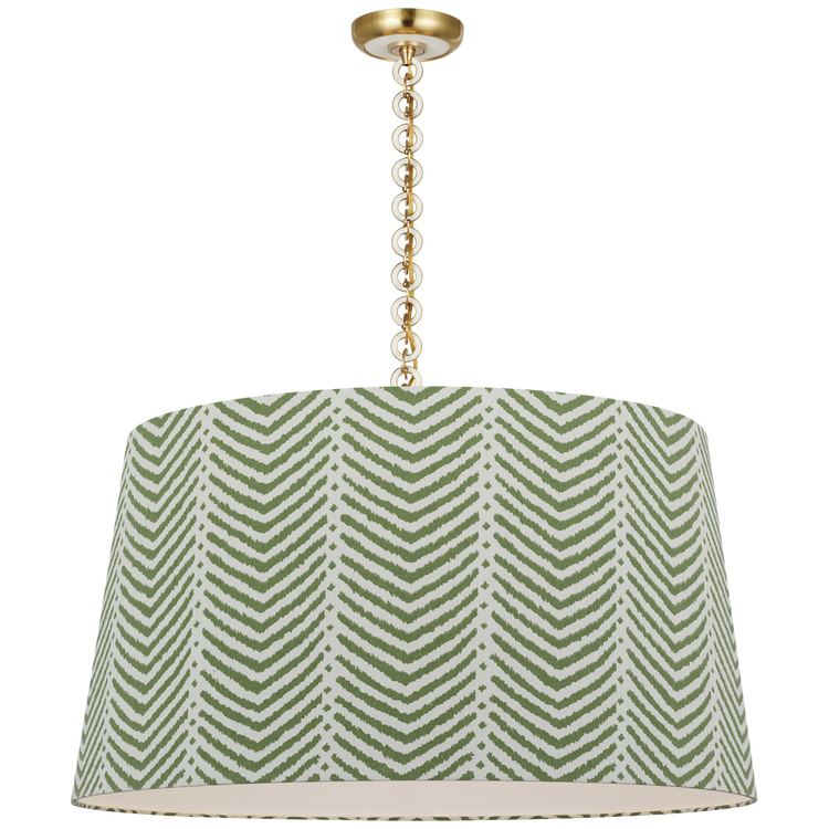 Evelyn 33" Hanging Shade in Hand-Rubbed Antique Brass and Natural Oak with Schumacher Verde La Jolla Shade