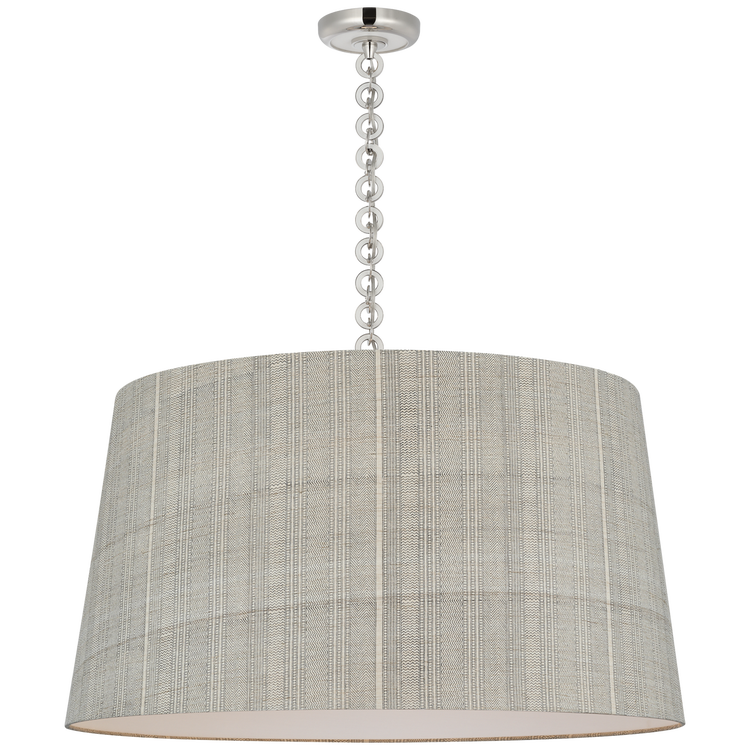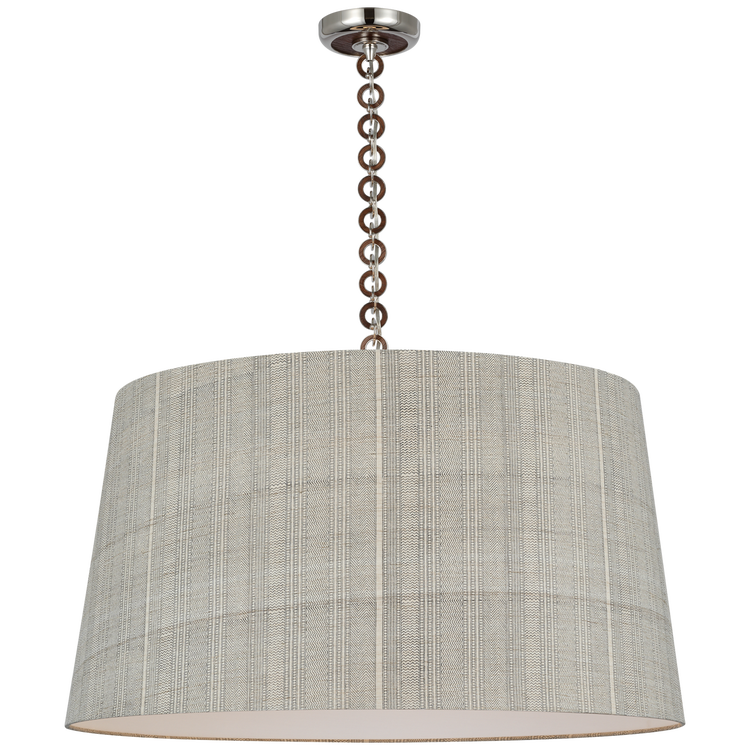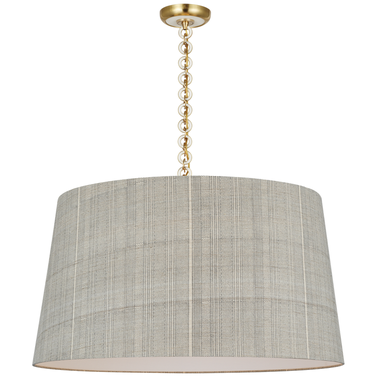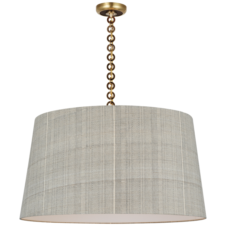 Evelyn 33" Hanging Shade in Hand-Rubbed Antique Brass and Natural Oak with Schumacher Dove Soho Weave Shade