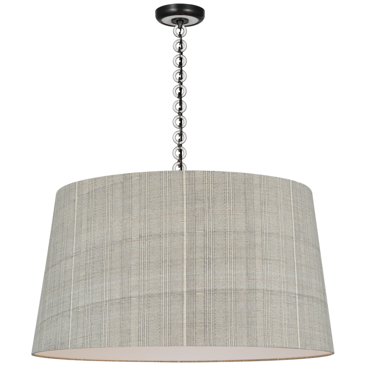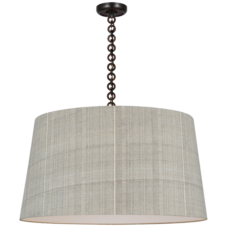 Evelyn 33" Hanging Shade in Bronze and Natural Oak with Schumacher Dove Soho Weave Shade