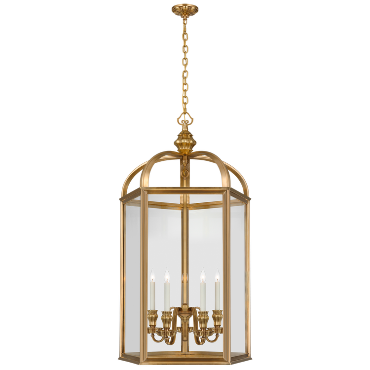 Falaise Large Lantern in Natural Brass with Clear Glass Open Box