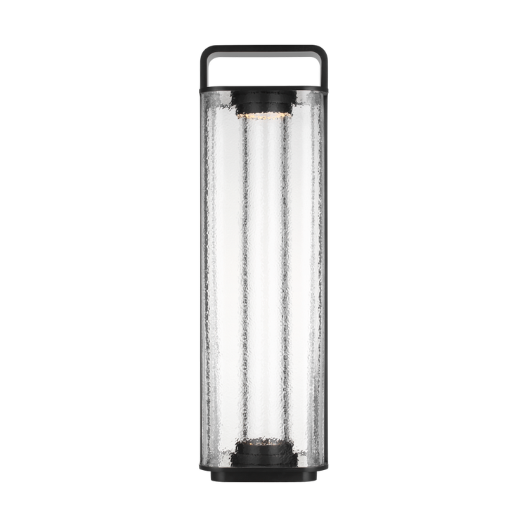A modern interpretation of classic lantern lamps, the Flacara table lamp by Kelly Wearstler showcases artisanal textured glass inspired by Murano craftsmanship. The lamp is rechargeable and portable, featuring a 3-way flush touch button and handle at the top. The versatile light is ideal for a variety of spaces, both indoor and outdoor, with no need to worry about proximity to an outlet. Available in modern finishes. A USB C to C cable allows Tawa to recharge within 5 hours with a maximum battery life of 12-14 hours. Wall charger included.