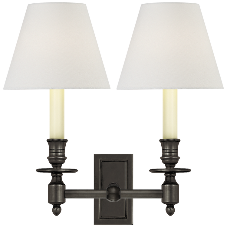 French Double Library Sconce in Bronze with Linen Shades Open Box