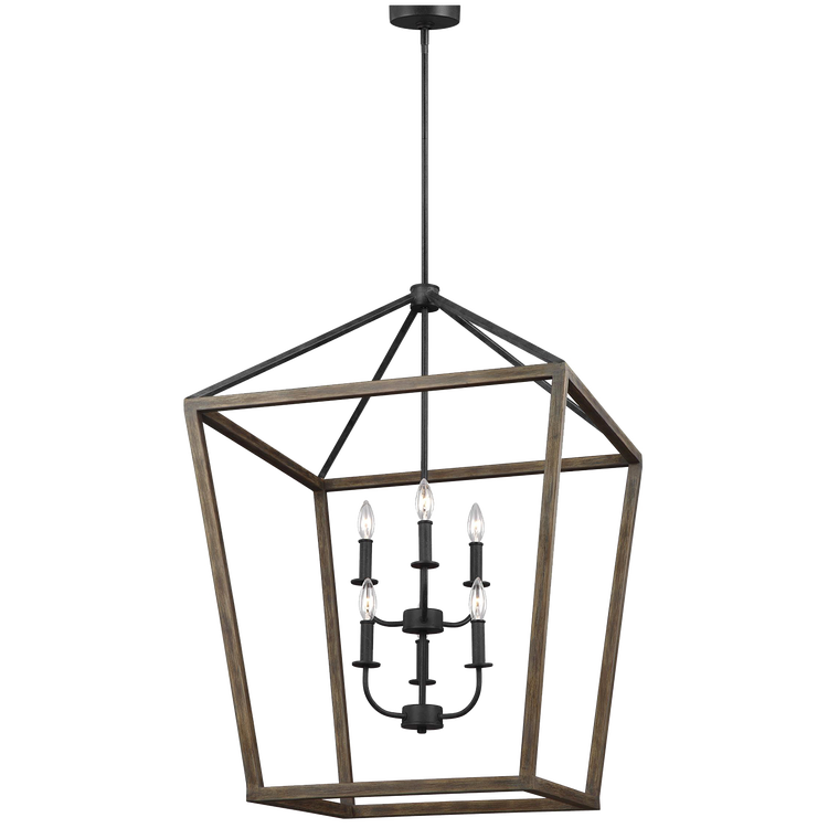 The Gannet Series exudes rustic flair with a two-tone finish of painted, distressed Weathered Oak on an Antique Forged Iron metal frame. Crisp edges and bold lines pair with open, airy frames on the sides and crown that soften this iconic lantern silhouette.