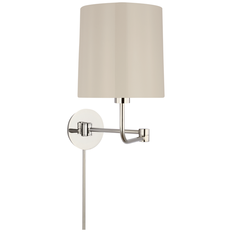 Go Lightly Swing Arm Wall Light in Polished Nickel with China White Shade Open Box