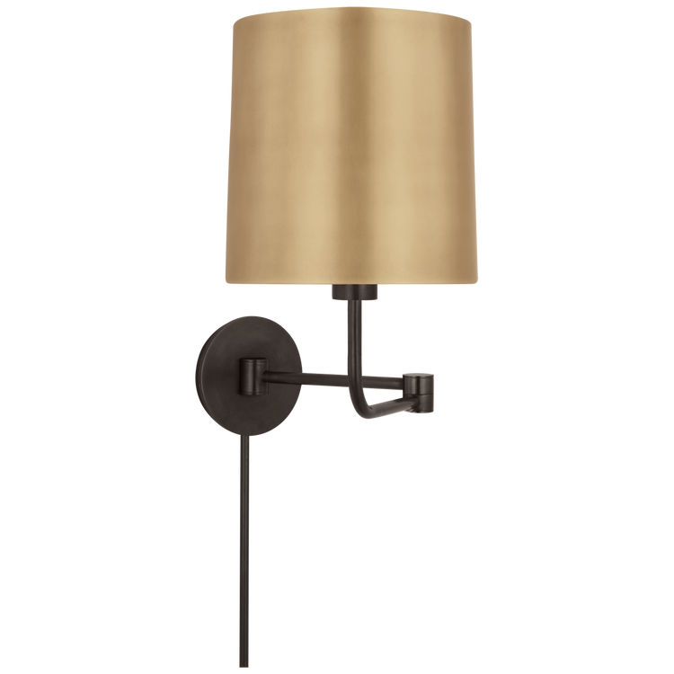 Go Lightly Swing Arm Wall Light in Bronze with Soft Brass Shade Open Box