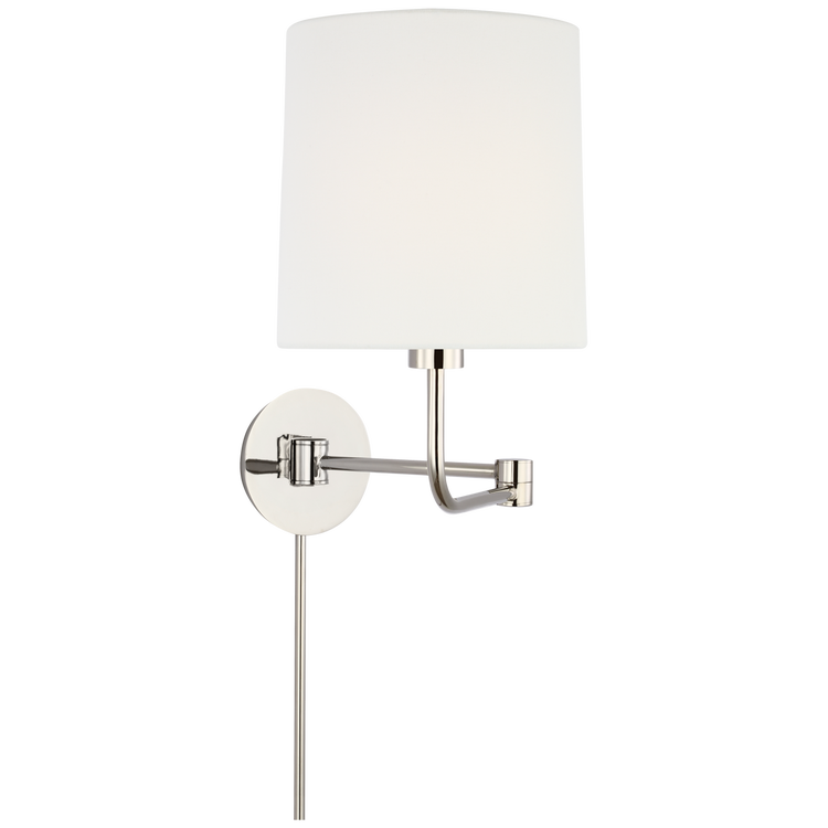 Go Lightly Swing Arm Wall Light in Polished Nickel with Linen Shade Open Box