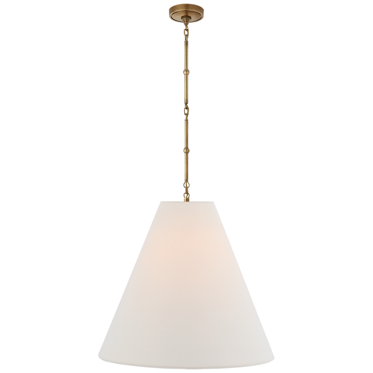 Goodman Large Hanging Lamp in Hand-Rubbed Antique Brass with Linen Shade Open Box
