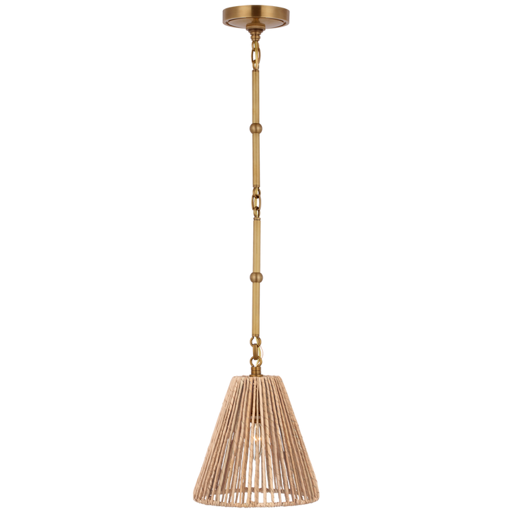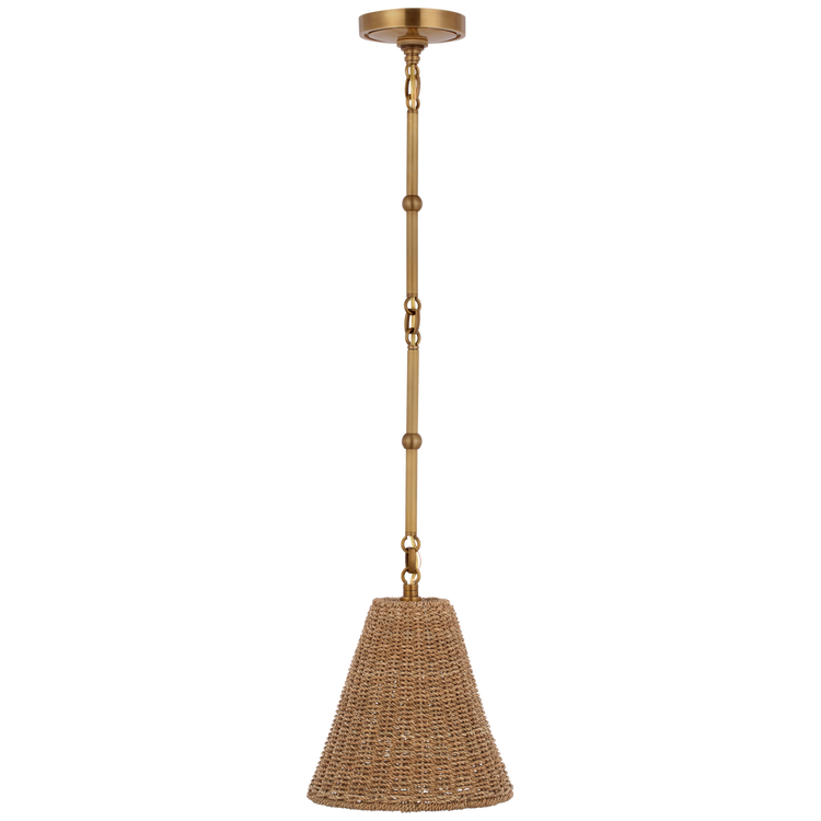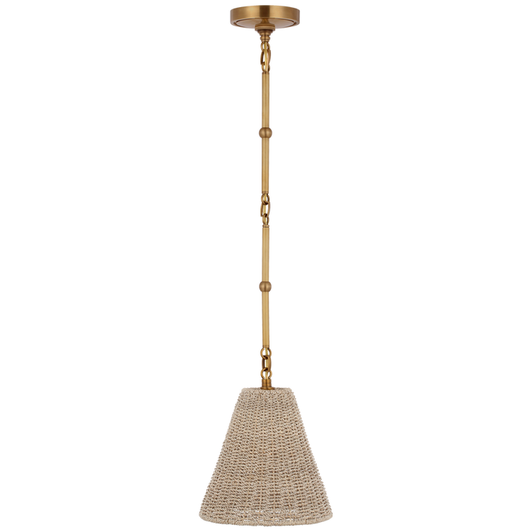 Goodman Petite Hanging Shade in Hand-Rubbed Antique Brass with Natural Abaca Shade