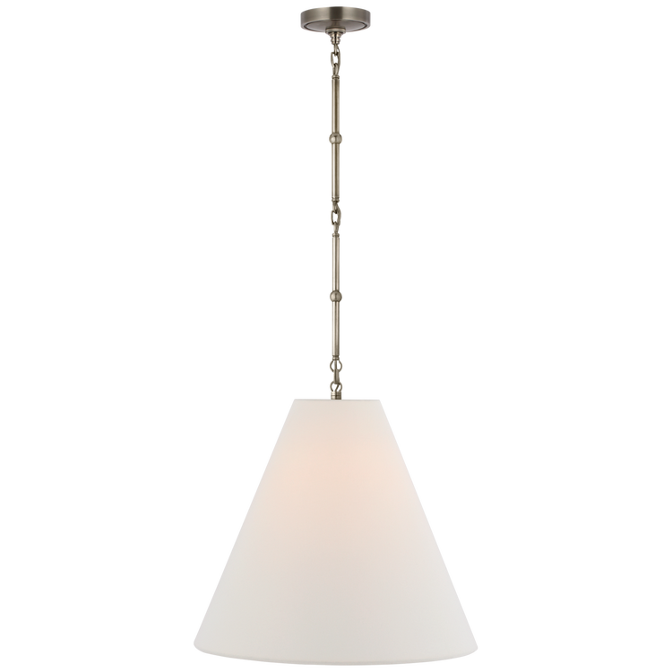 Goodman Medium Hanging Light in Antique Nickel with Linen Shade Open Box