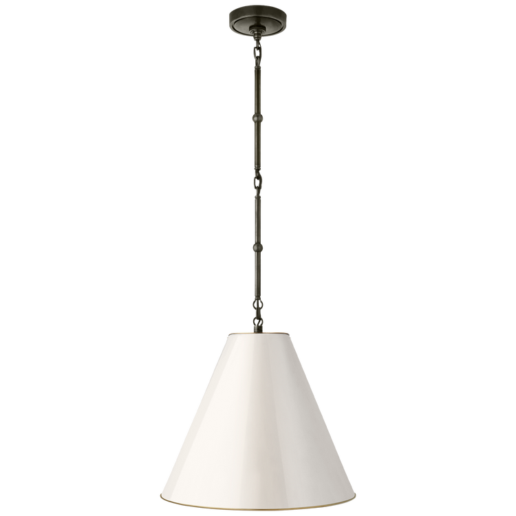 Goodman Small Hanging Light in Bronze with Antique White Shade Open Box