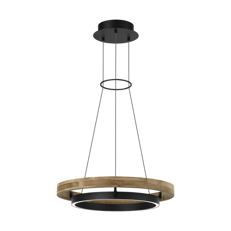 Concentric rings create a modern statement in the Grace outdoor chandelier. The larger outer ring of the 24" Chandelier is made with solid teak wood that will patina over time, creating a weathered, silvered finish ? an inherent quality of teak. An inner ring in our Nightshade Black finish features integrated upward- and downward-facing LED lights, casting a bi-directional glow for exterior illumination.