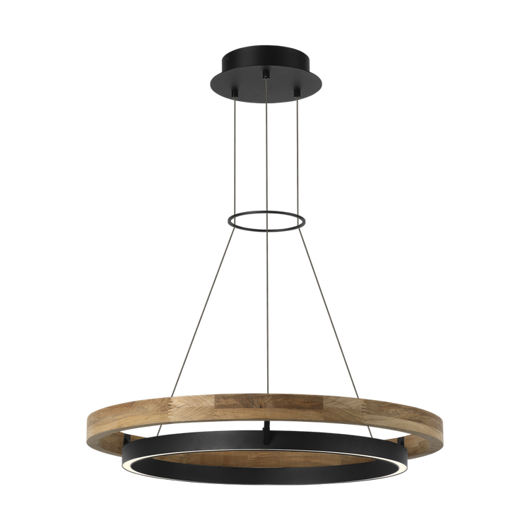 Concentric rings create a modern statement in the Grace outdoor chandelier. The larger outer ring of the 30" Chandelier is made with solid teak wood that will patina over time, creating a weathered, silvered finish ? an inherent quality of teak. An inner ring in our Nightshade Black finish features integrated upward- and downward-facing LED lights, casting a bi-directional glow for exterior illumination.