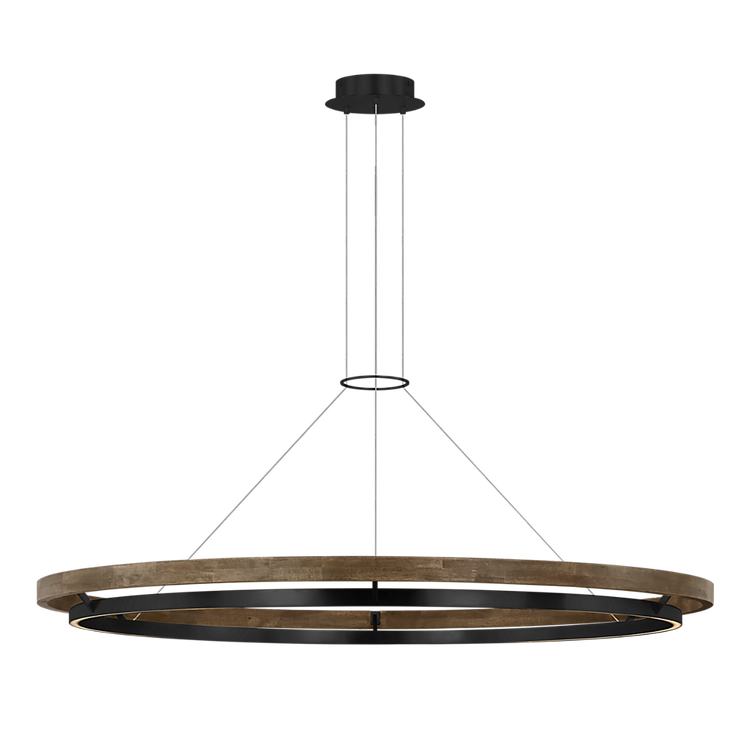 Grace 65 Chandelier by Sean Lavin is designed with two rings that illuminate this contemporary chandelier. A large natural oak outer ring has organic texture complemented by a decorative black inner ring housing gently diffused upward and downward LEDs. Featuring integrated LED technology on the inner ring, the Grace Chandelier provides a graceful halo of light. Lamping options are compatible with most dimmers. Refer to the Dimming Chart for more information