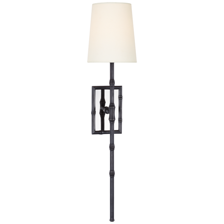 Grenol Single Bamboo Tail Sconce in Bronze with Linen Shade Open Box