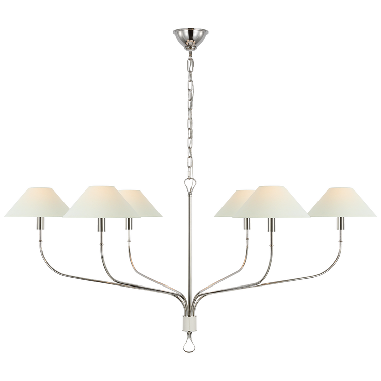 Griffin Grande Tail Chandelier in Polished Nickel and Parchment Leather with Linen Shades Open Box