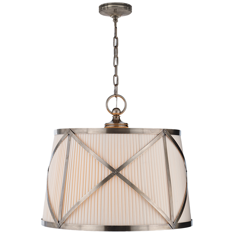 Grosvenor Large Single Hanging Shade in Antique Nickel with Linen Shade Open Box