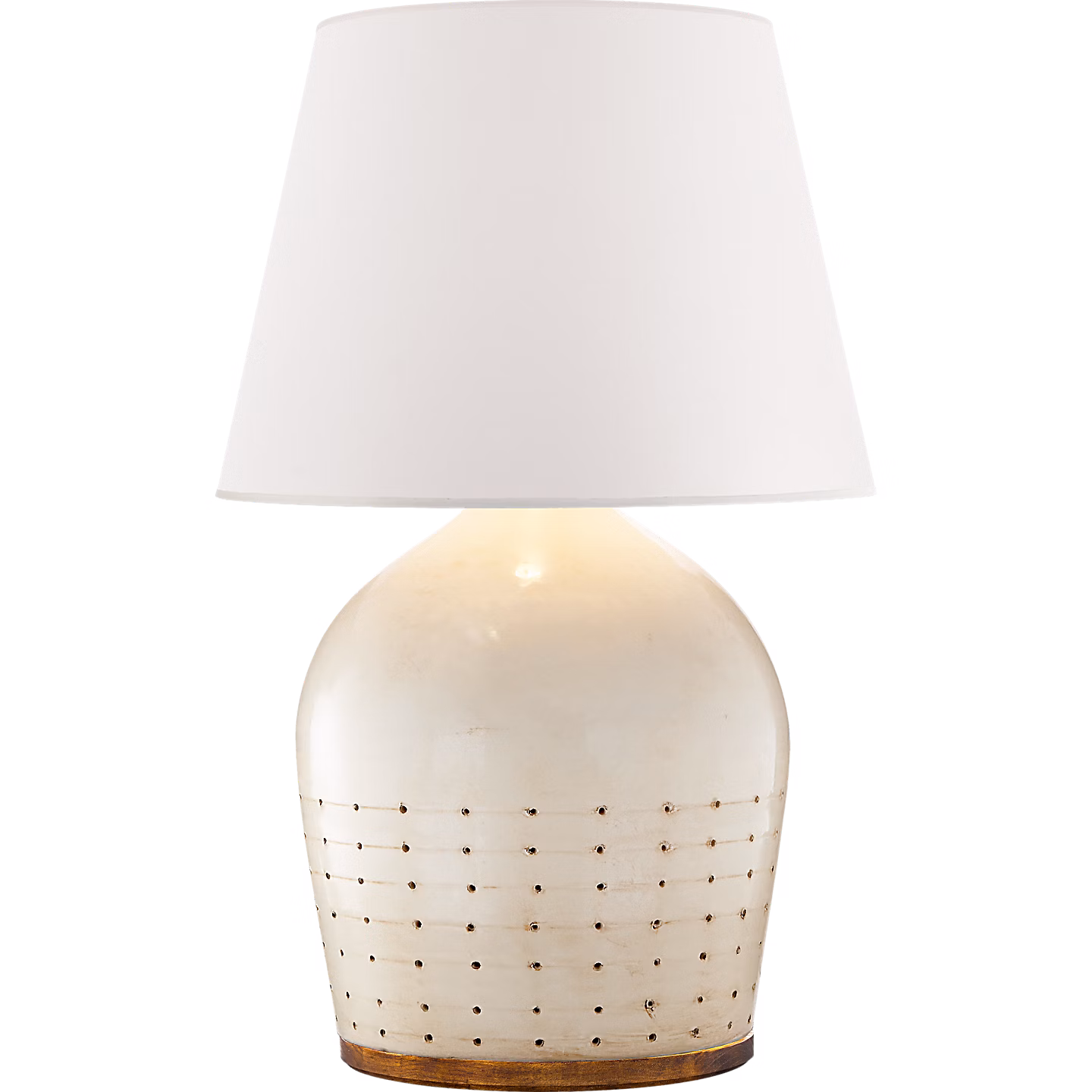 The sophisticated Halifax by Ralph Lauren is antique-inspired but appropriate for contemporary interiors. Ceramic finishes embellish a rounded silhouette with perforations adorning the lower half. A rustic wood base and paper shade complete a piece that's ideal for any living room or home office.