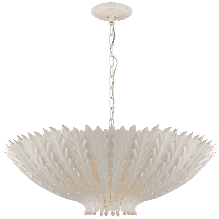 The Hampton series by AERIN creates a lit-from-within effect as light streams past sculpted metal leaves. Cutting-edge design and traditional craftsmanship create an easy elegance and organic style. Showcasing an intricate, bowl-shaped silhouette, the Hampton brings a touch of nature and soft light to living and dining areas, and is equally at home in bedrooms and bathrooms.