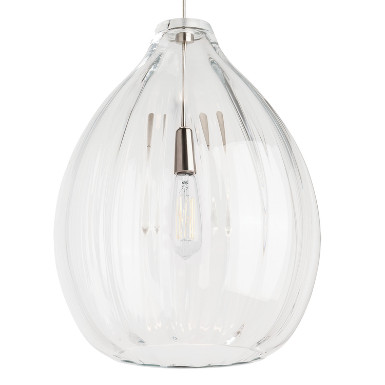 The Harper pendant by VC Modern draws the eye with its beautiful tear dropped ribbed organic texture. The artisans start by creating a classic bulb shape and then gently manipulate the glass into a perfectly ribbed texture. This contemporary glass pendant comes in multiple on-trend finishes. Available lamping options include energy efficient LED or no-lamp, leaving you the option to light this fixture with your preferred lamping. The LED lamping option is fully dimmable to create the desired ambiance in your special space. With its grand scale and beautiful color options the Harper pendant is ideal for dining room lighting, home office lighting and foyer lighting.