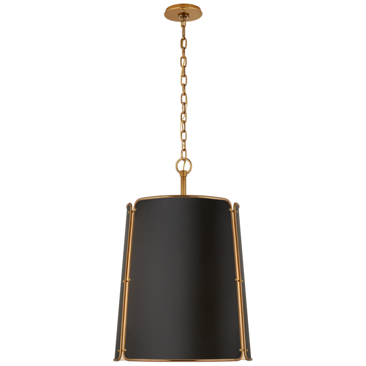 Hastings Large Pendant in Hand-Rubbed Antique Brass with Black Shade Open Box