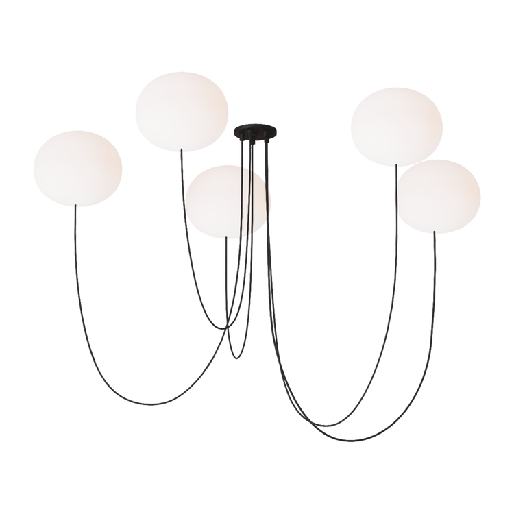 Helium Large 5 Light Chandelier Opal Etched Matte Black 2700K 90 CRI