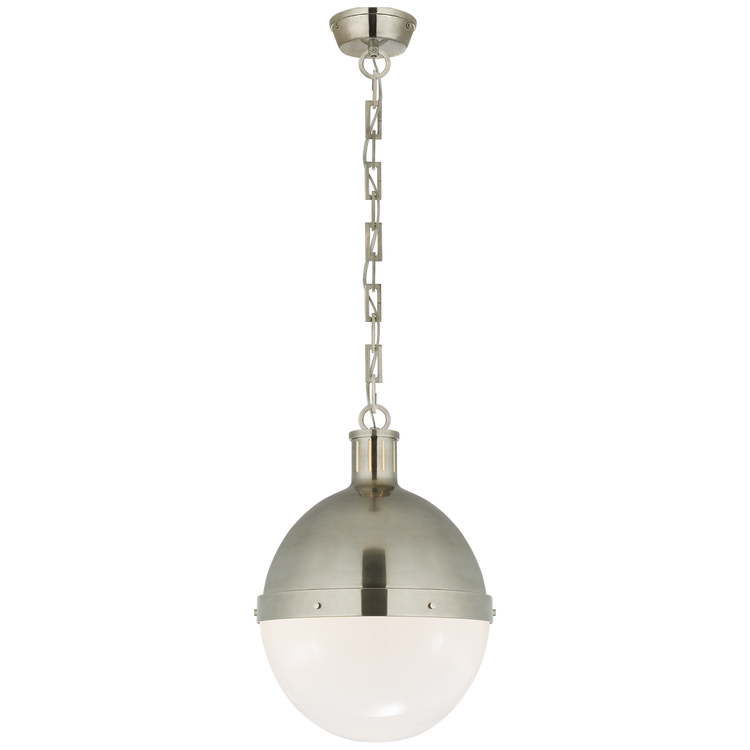 Hicks Large Pendant in Antique Nickel with White Glass Open Box