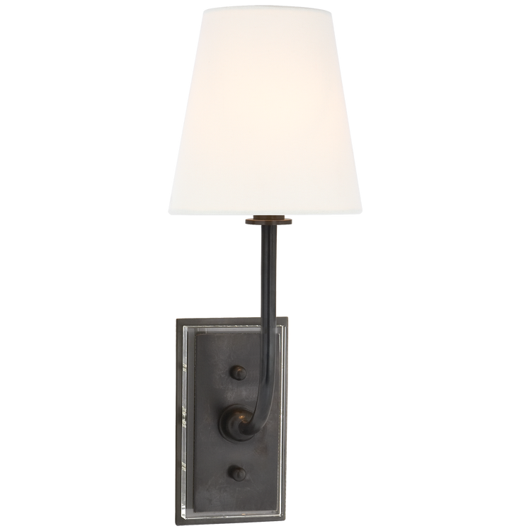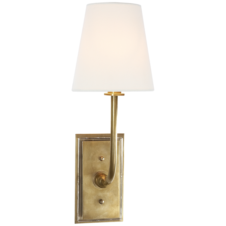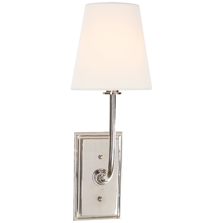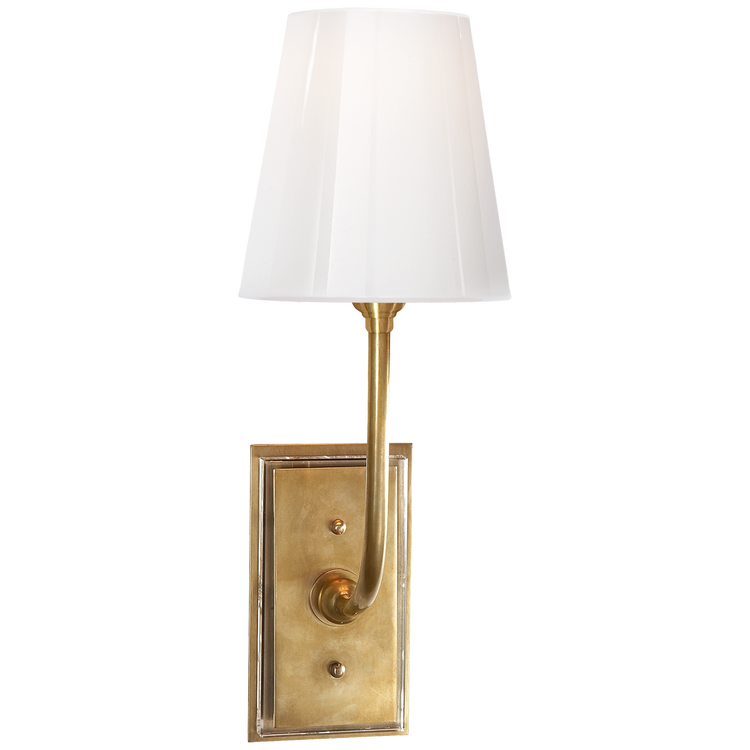Blending traditional and modern elements, the Hulton by Thomas O'Brien represents effortless elegance. Slender, gracefully curved brass arms are accented by crystal detailing. The silhouettes are more classic when styled with the shades or take on a mod look without them.