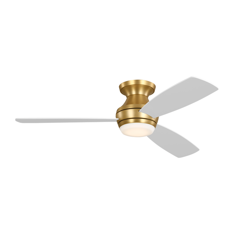Ikon 52 Hugger LED Ceiling Fan in with Matte White Blades and Light Kit Burnished Brass