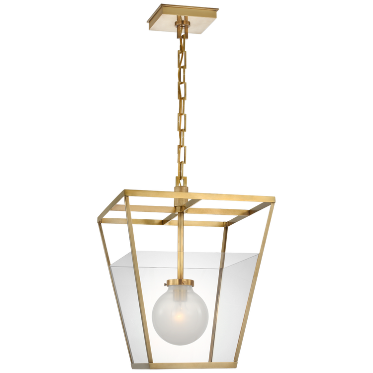 The Illume by Ray Booth reframes traditional lantern forms focusing on simplicity. Pared down to its most essential structure, the box frame hangs on a rectangular chain and is shielded by a frosted globe. Available in antique brass, polished nickel or warm iron with burnished brass, the lantern will lend a charming touch to entryways, hallways or even suspended over a table, and can be used alone or in multiples for a dramatic flair.