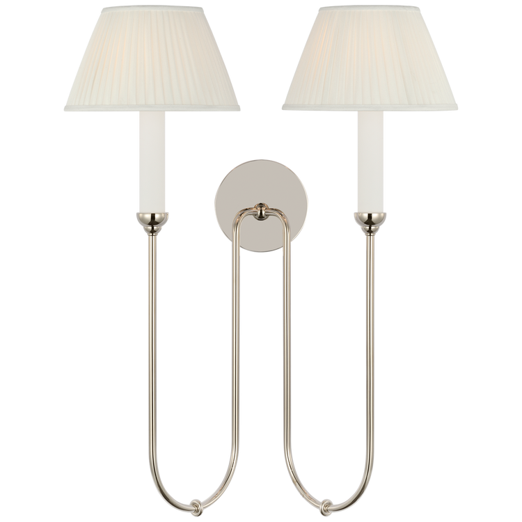 Ingela 24" Double Sconce in Polished Nickel with Silk Pleat Shades
