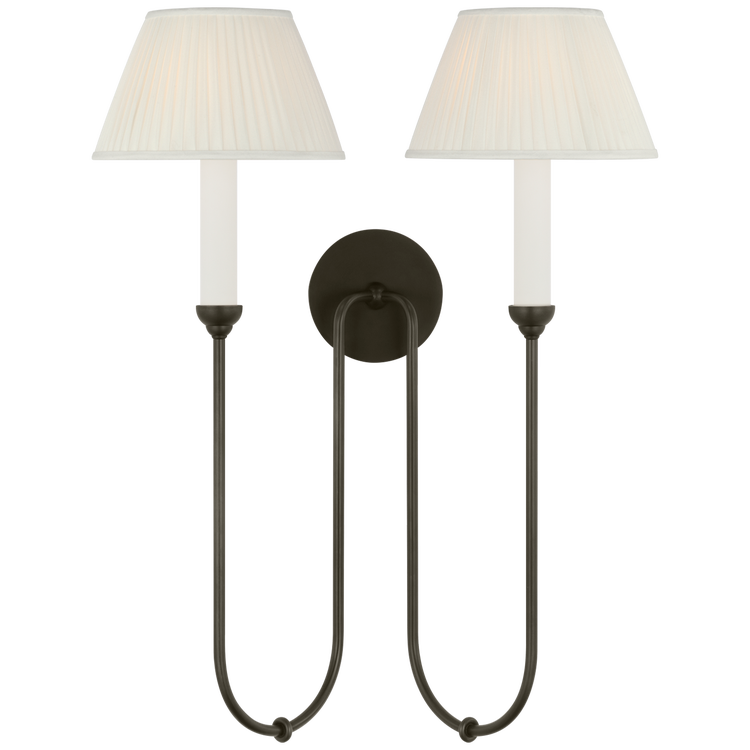 Ingela 24" Double Sconce in Modern Iron with Silk Pleat Shades